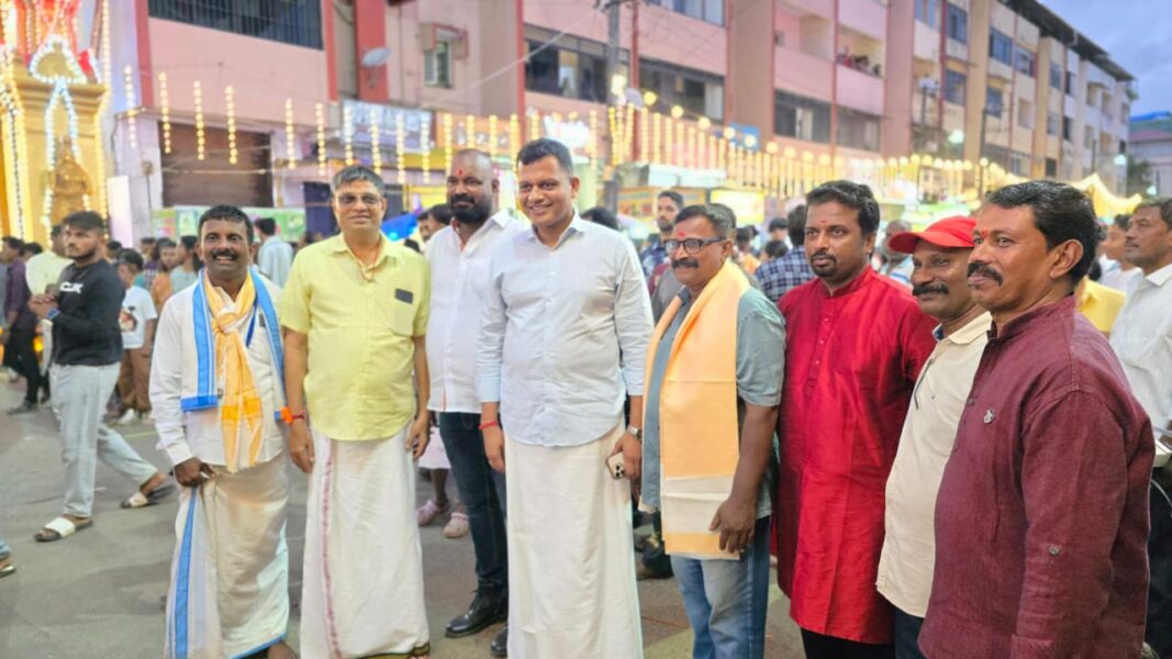 Sharadotsava 2025 – Kudroli Gokarnanatheshwara Temple organized a welcome ceremony for Goddess Sharada near the Mahadwara of the Navratri Mahotsav procession and distributed laddu prasadam to the attendees. Honorable BJP MP Shri Brijesh Chauta and BJP leader Sanjay Prabhu visited the welcoming place of Goddess Sharada.