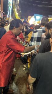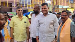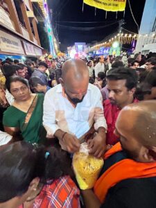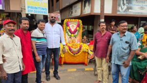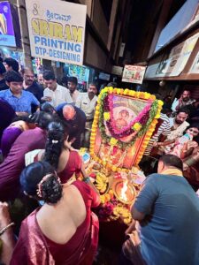 Sharadotsava 2025 – Kudroli Gokarnanatheshwara Temple organized a welcome ceremony for Goddess Sharada near the Mahadwara of the Navratri Mahotsav procession and distributed laddu prasadam to the attendees. Honorable BJP MP Shri Brijesh Chauta and BJP leader Sanjay Prabhu visited the welcoming place of Goddess Sharada.